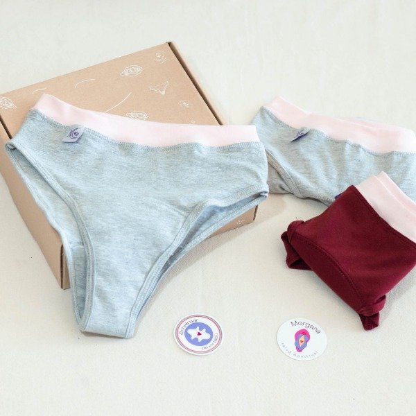 Bombacha menstrual confeccionada con tela algodón premium en contacto con la piel, por dentro lleva telas absorbentes de algodón y un tejido técnico impermeable y respirable que impide que tu flujo menstrual se pase hasta por 8 horas.